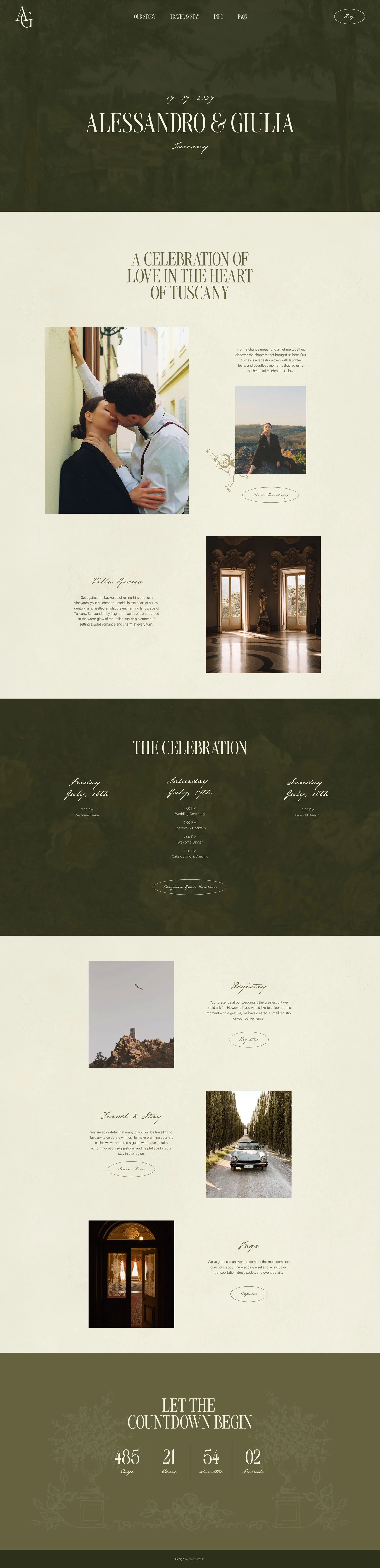 Embark on a journey with our Giona website template, meticulously crafted for couples who crave an extraordinary first impression and desire to establish the perfect ambiance for their special day. Giona seamlessly blends thoughtful functionality with the timeless elegance inspired by lush Italian landscapes. This template unfolds a user-friendly canvas, inviting you to narrate your love story, share essential details, and enchant your guests well before the grand celebration. Giona sets the stage where every digital detail echoes the sophistication and vibrancy of an Italian summer, ensuring your wedding website is as captivating as your love story.
