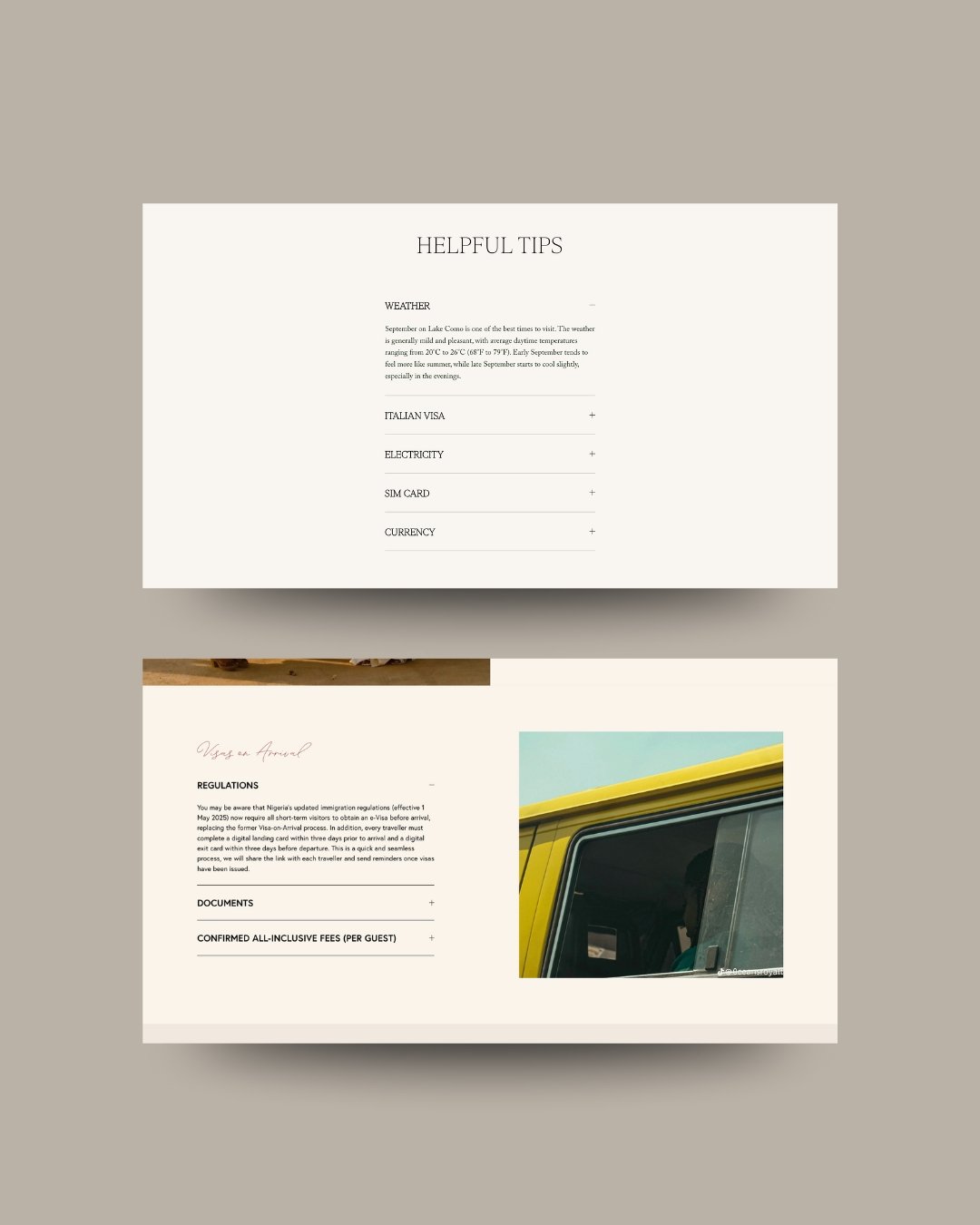 Through colour palette, typography, layout, and subtle illustration, design can transport guests emotionally — offering a glimpse of the destination before they arrive.