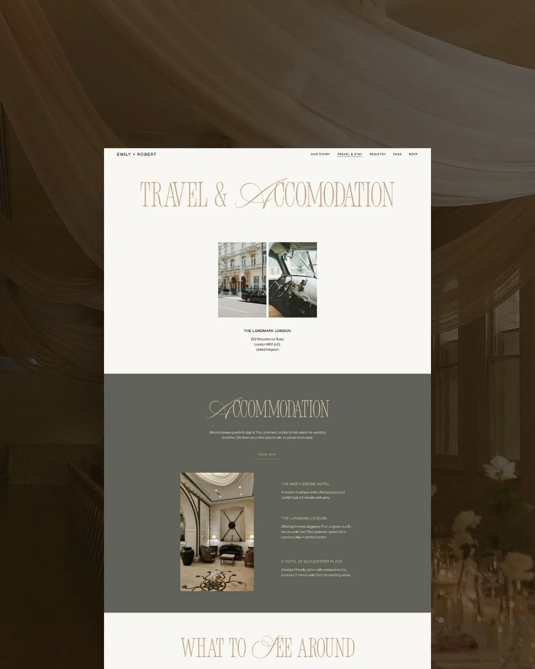 Finally, your wedding website should visually echo the place you’ve chosen.
