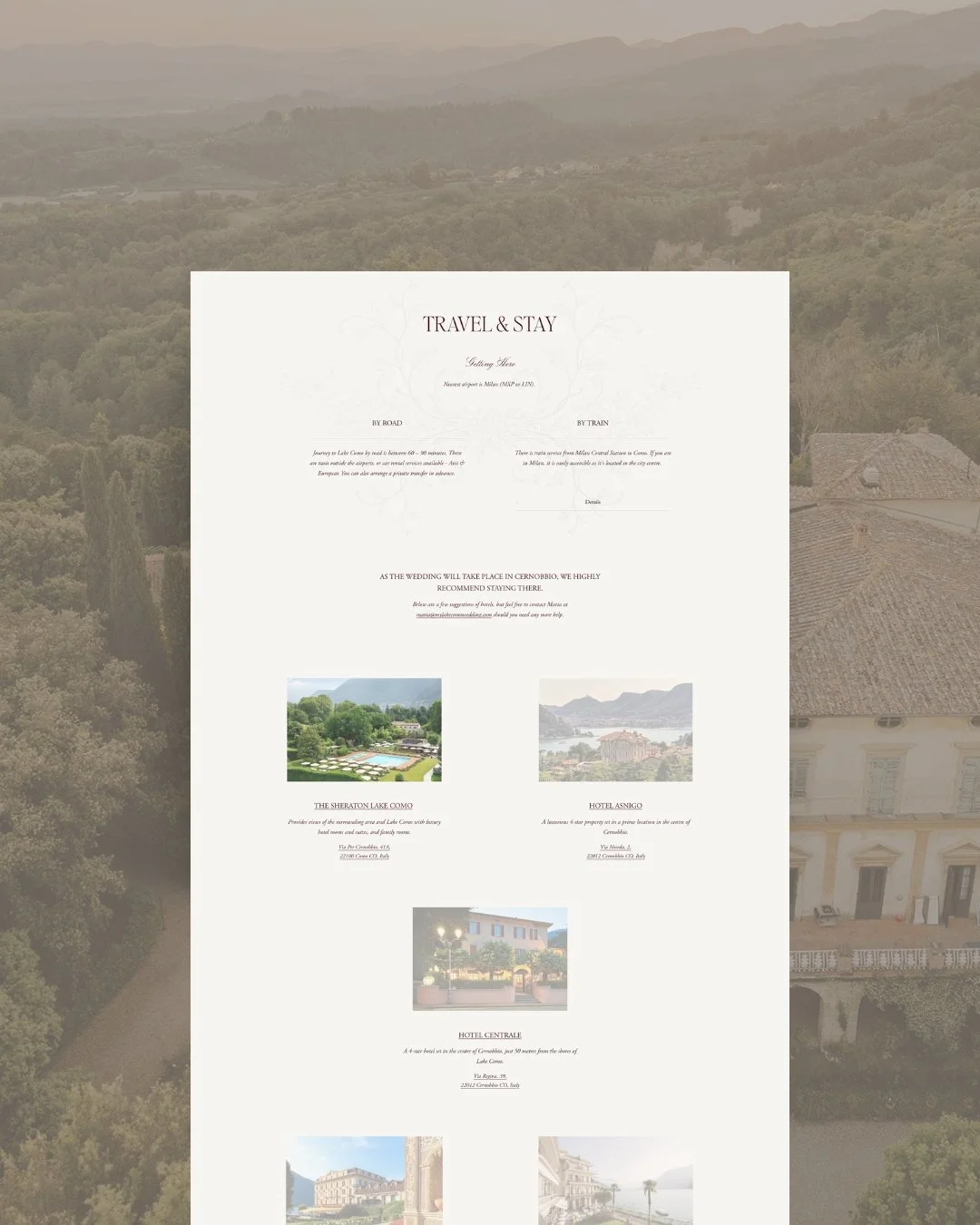 Your website should clearly highlight recommended hotels, villas, or areas — ideally explaining why you’ve chosen them (location, atmosphere, proximity to venues, transport access, or budget range).