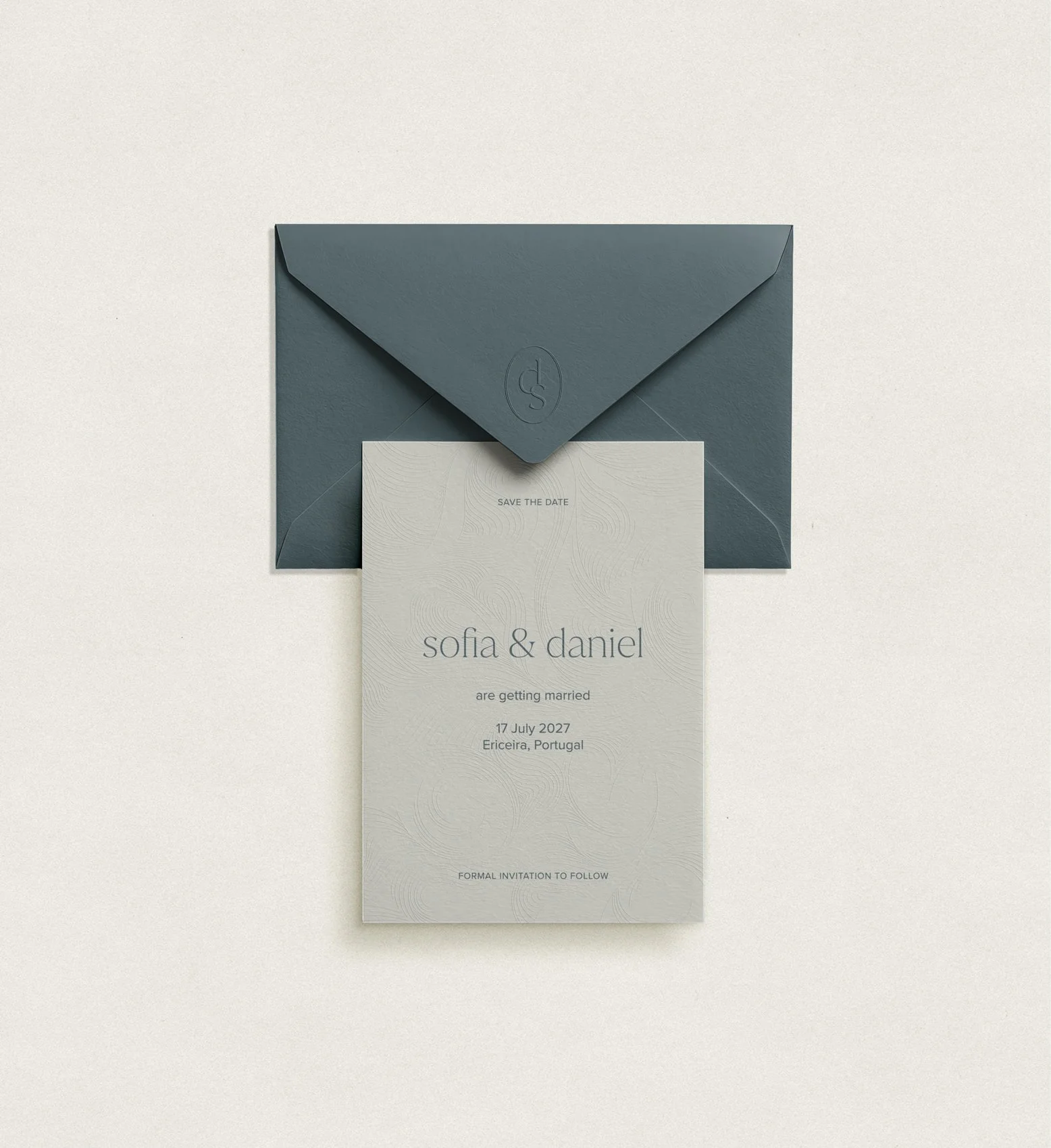 Inspired by the rhythm of the Atlantic and the soft light of the Portuguese coast, Onda (meaning “wave” in Portuguese) is a modern coastal wedding collection defined by movement, space, and air. Ocean splashes, wave-like layouts, and pearl-inspired details shape a visual language that feels fluid and natural, while airy textures and sun-washed tones create a calm, open atmosphere. An organic contemporary type system brings warmth and refinement, allowing typography to move gently through generous white space. Designed for destination weddings and couples drawn to the sea, Onda balances simplicity and emotion, offering an elegant, light-filled foundation for modern coastal celebrations.